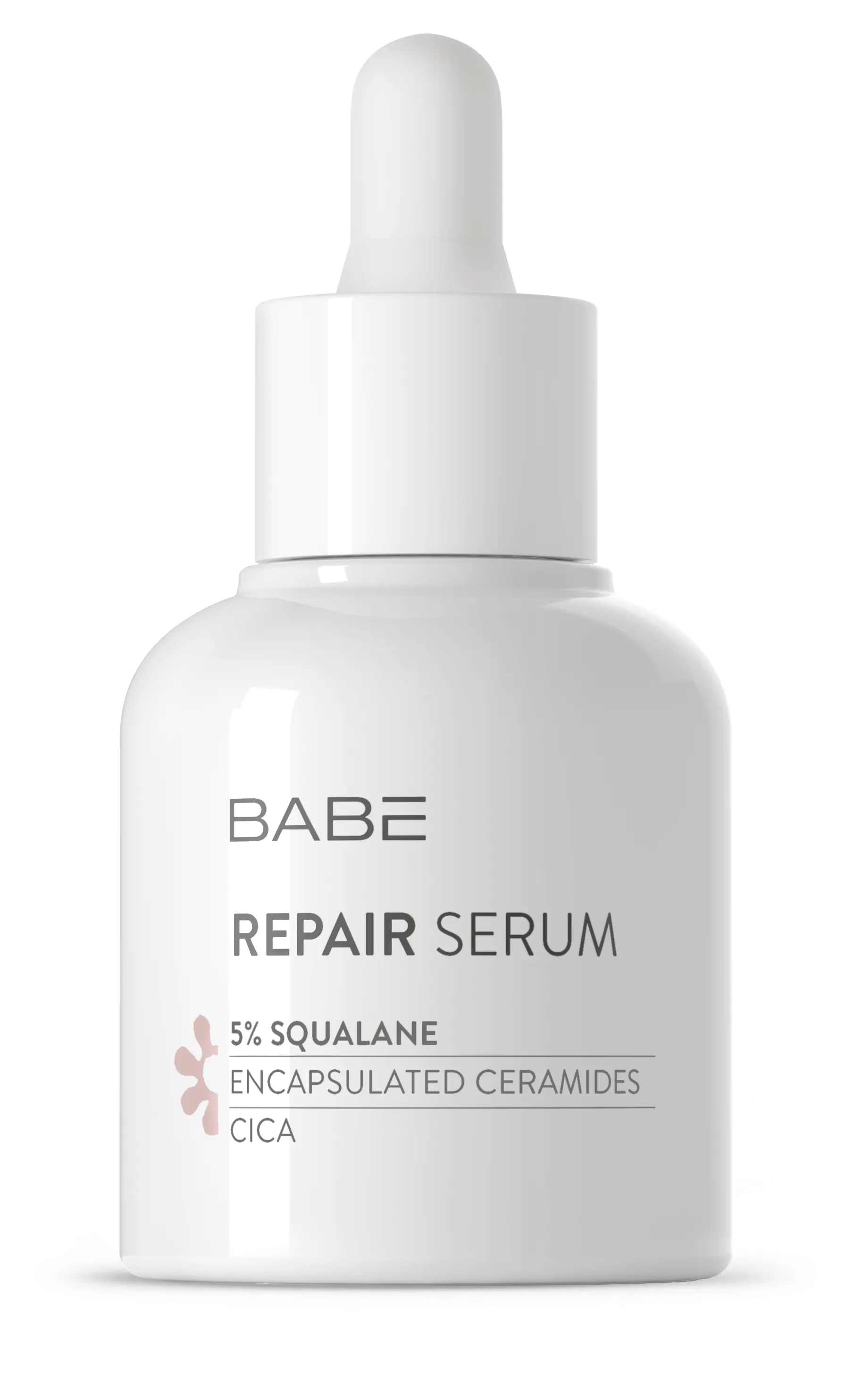 BABÉ atkuriamasis veido serumas „Repair Serum“, kurio formulę sinerginis veikliųjų medžiagų, tokių kaip inkapsuliuoti keramidai, niacinamidas ir azijinė centelė, derinys, stiprina odos barjerinę funkciją. Dėl sudėtyje esančio skvalano ir didelės bei vidutinės molekulinės masės hialurono rūgšties, serumas užtikrina gilų, greitą ir ilgalaikį odos drėkinimą. Sudėtyje esantys prebiotikai ir postbiotikai palaiko odos mikrobiomo balansą. Itin lengva, greitai įsigerianti tekstūra nepalieka riebumo pojūčio ir apgaubia įjautrintą odą maloniu komforto pojūčiu.• Skatina ląstelių atsinaujinimą.• Atkuria odos barjerą.• Apsaugo odą nuo žalingo aplinkos veiksnių poveikio.• Ramina odą, suteikia geros savijautos ir komforto pojūtį.• Drėkina, stiprina, ramina ir regeneruoja odą.• Mažina raukšlių ir mimikos raukšlelių matomumą.