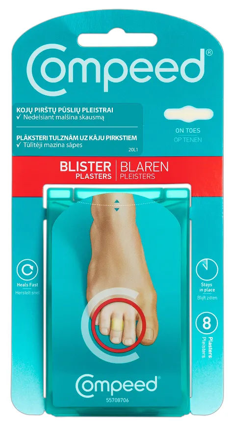 AKIMIRKSNIU MALŠINA SKAUSMĄ: sušvelnina smūgius, taip sumažinant spaudimą ir užkertant kelią skausmui bei trynimui. UŽTIKRINA GREITĄ gijimą: hidrokoloidinio gelio technologija užtikrina optimalią aplinką gijimo procesui. LAIKOSI KELIAS DIENAS: itin patvarūs suapvalinti kraštai užtikrina pleistrų Compeed prisitaikymą prie judesių ir neatsiklijuoja kaip įprastiniai pleistrai. ATSPARŪS VANDENIUI: užtikrina natūralų drėgmės lygį po pleistru ir neleidžia patekti bakterijoms, greitesnis natūralus gijimo procesas. DISKRETIŠKI: skaidrūs kraštai susilieja su odos atspalviu. Compeed yra sukurti kariuomenėje naudojamų žaizdų gydymo priemonių pagrindu. Hidrokoloidinė technologija idealiai tinka gydyti nuospaudas, atsiradusias dėl bėgimo, naujų ar seniai neavėtų batų ar visą dieną stovint ant kojų. Compeed yra pirmasis nuospaudų gydymo prekės ženklas, kuriuo pasitiki milijonai žmonių visame pasaulyje.s https://www.youtube.com/watch?v=jovZ28HeskE