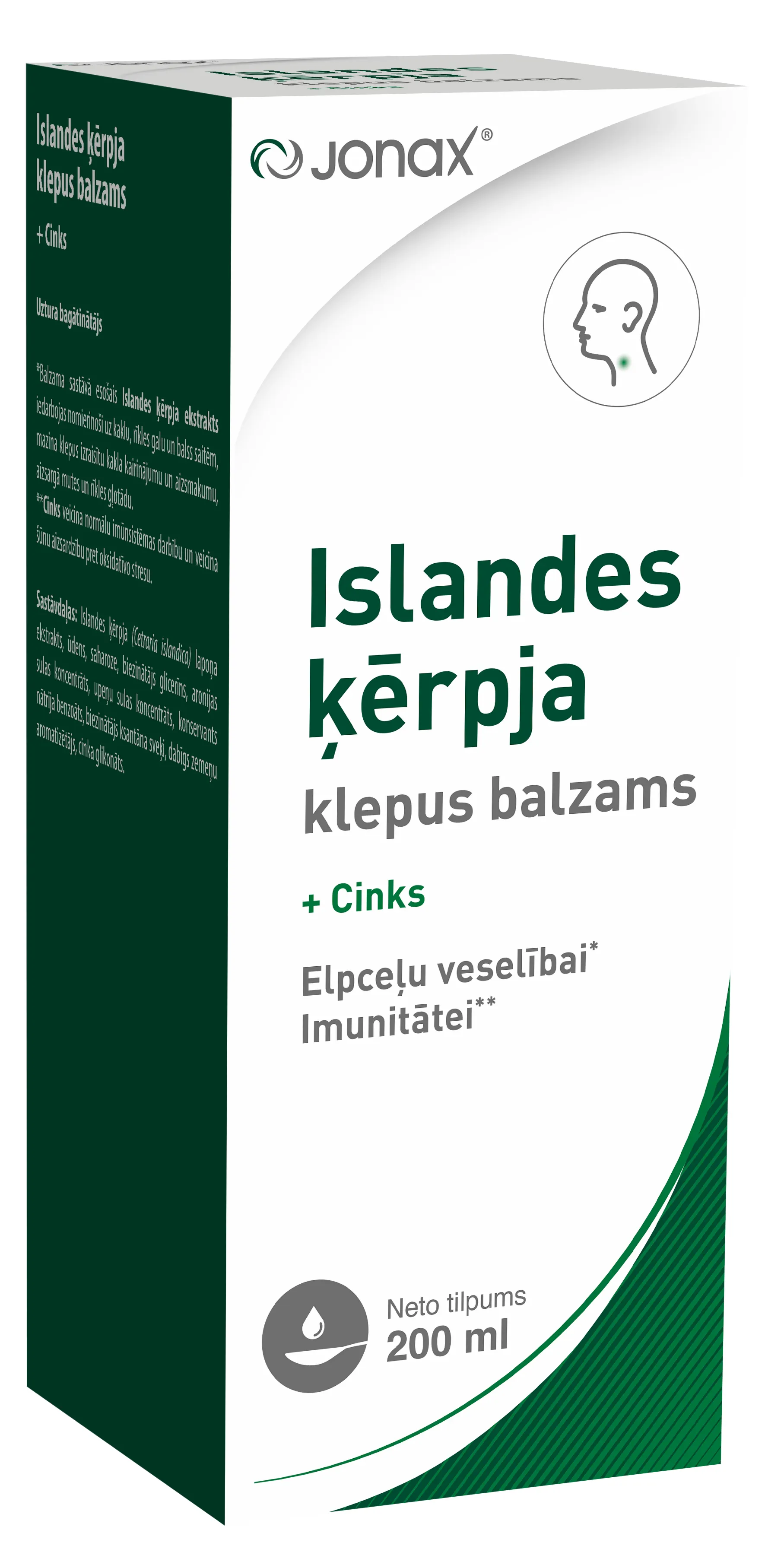 Balzamo sudėtyje esantis islandinės kerpenos ekstraktas ramina gerklę, ryklę ir balso stygas, mažina kosulio sukeltą gerklės dirginimą ir užkimimą, saugo burnos ir ryklės gleivinę. Cinkas padeda palaikyti normalią imuninės sistemos veiklą ir padeda apsaugoti ląsteles nuo oksidacinio streso.