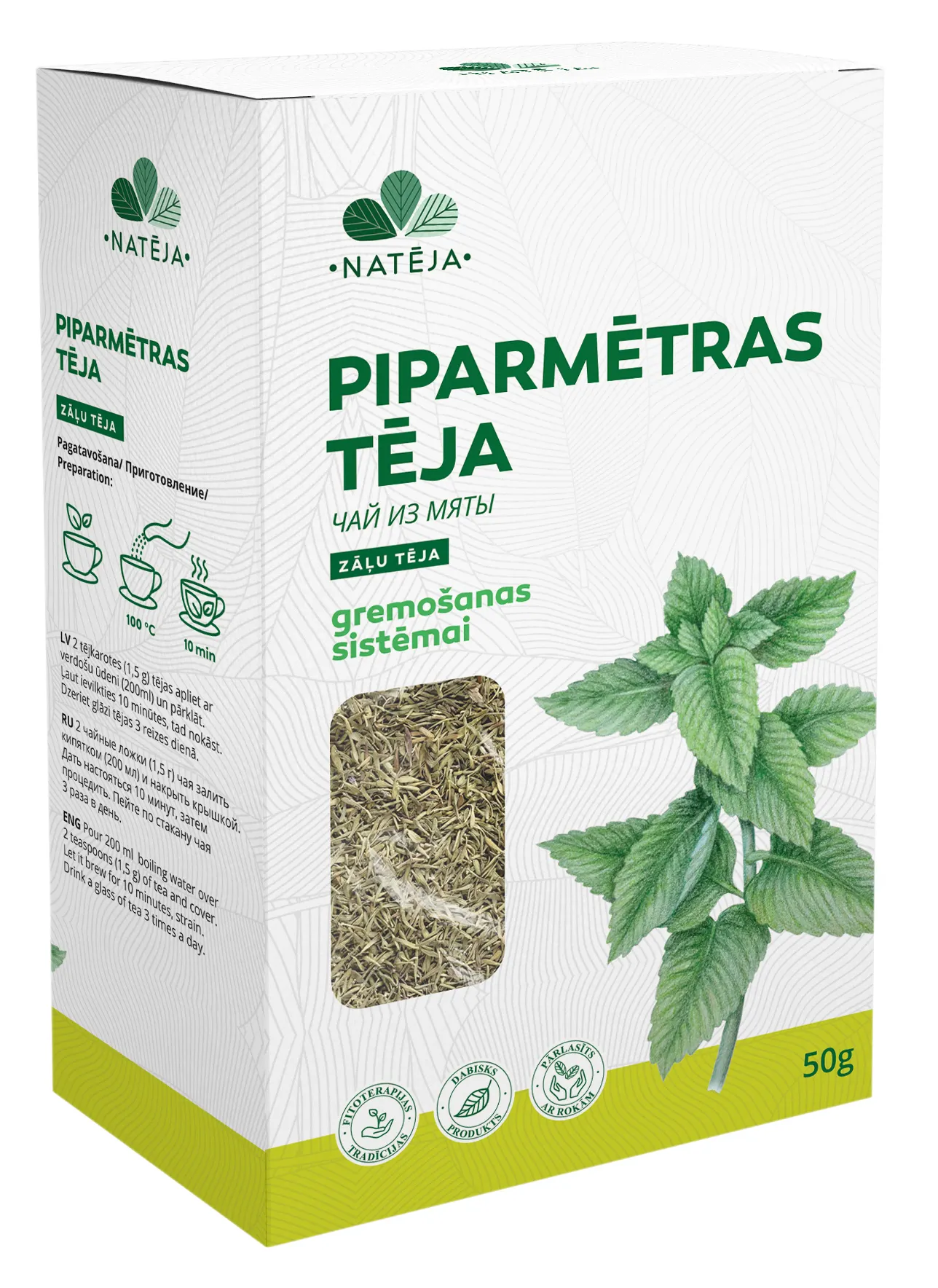 Gaivi ir aromatinga pipirmėčių arbata, pasižyminti švelniu, gaivinančiu skoniu bei natūraliu poveikiu organizmui. Pipirmėtės lapai yra kruopščiai atrinkti ir džiovinti, kad išsaugotų visas naudingąsias savybes. Padeda virškinimui, mažina pilvo pūtimą ir spazmusRamina ir atpalaiduoja po įtemptos dienosGaivus aromatas palengvina kvėpavimąNatūralus pasirinkimas be dirbtinių priedų