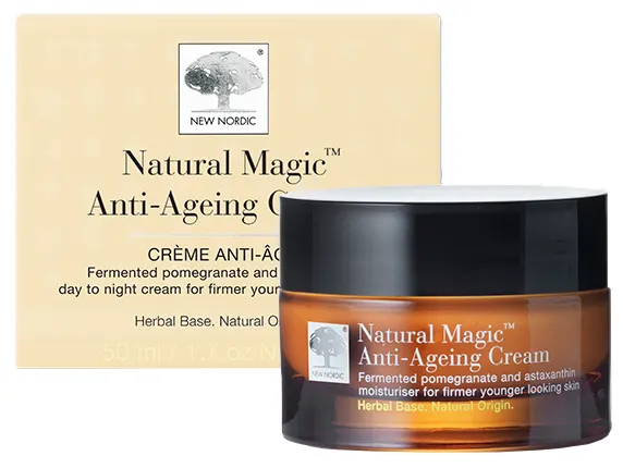 Natural Magic™ Anti-Ageing Cream yra intensyvus drėkinamasis kremas. Jo sudėtyje yra fermentuotų granatmedžių vaisių ir astaksantino, kurie odai suteikia stangrumo ir jaunatviškumo. Jei norite išskirtinių rezultatų, šį kremą naudokite kartu su „Skin Care™ Collagen Filler“ tabletėmis.Normaliai ir sausai odai.