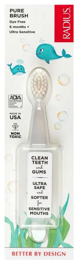 Minkštų šerelių pagalvėlė tolygiai paskirsto spaudimą į dantukus ir dantenas. Ovali ir lenkta šepetėlio rankenėlė patogi kūdikiui ir lengvai kontroliuojama tėvelių. Šepetėlio rankenėlė pagaminta iš elastiško gryno medicininio plastiko be latekso, dažiklių, BPA, pftalatų ir kitų kenksmingų priedų, todėl gali būti kramtomas. Patrauklus šepetėlio dizainas sukurtas galvojant apie Jūsų mažylį. Tinka veganams.