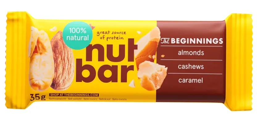 THE BEGINNINGS riešutų ir karamelės skonio batonėlis, 33 g