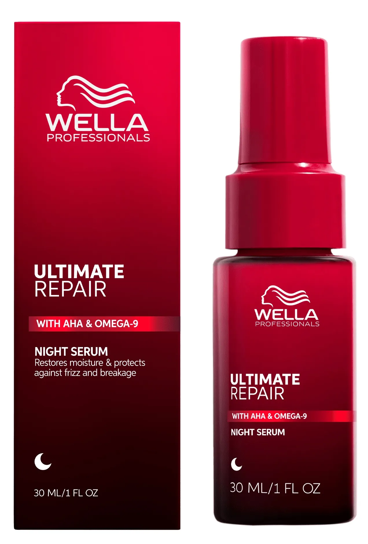 Wella Professionals ULTIMATE REPAIR naktinis plaukų serumas. Padeda atkurti ir apsaugoti plaukus Jums miegant. Triguba nauda jūsų plaukams: atkuria, drėkina, apsaugo. 8 valandų ilgalaikis poveikis. Patentuota technologija.
